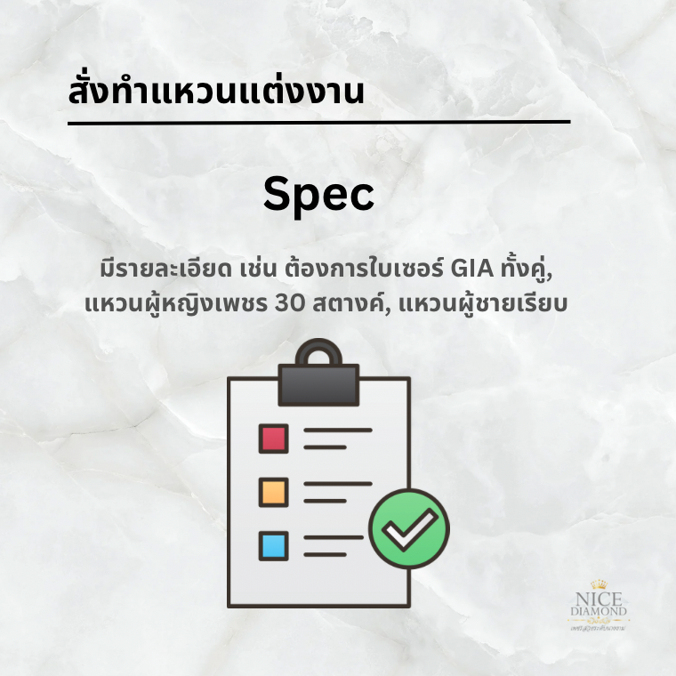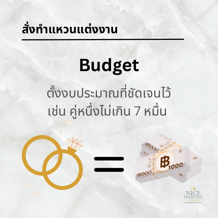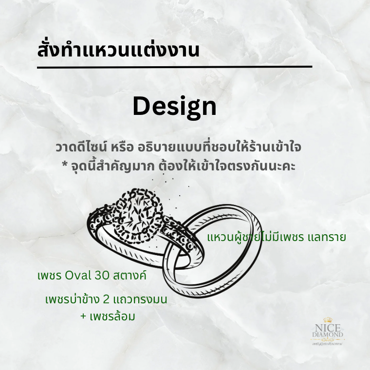 การสั่งทำเป็นทางเลือกสำหรับคุณค่ะ ยิ้มมี 3 ข้อง่ายๆที่จำเป็นสำหรับการสั่งทำแหวนแต่งงาน หรือ สินค้าอื่นๆ เรียกว่า B.S.D ย่อมากจาก ฺBudget งบประมาณ, Spec รายละเอียด, Design ดีไซน์