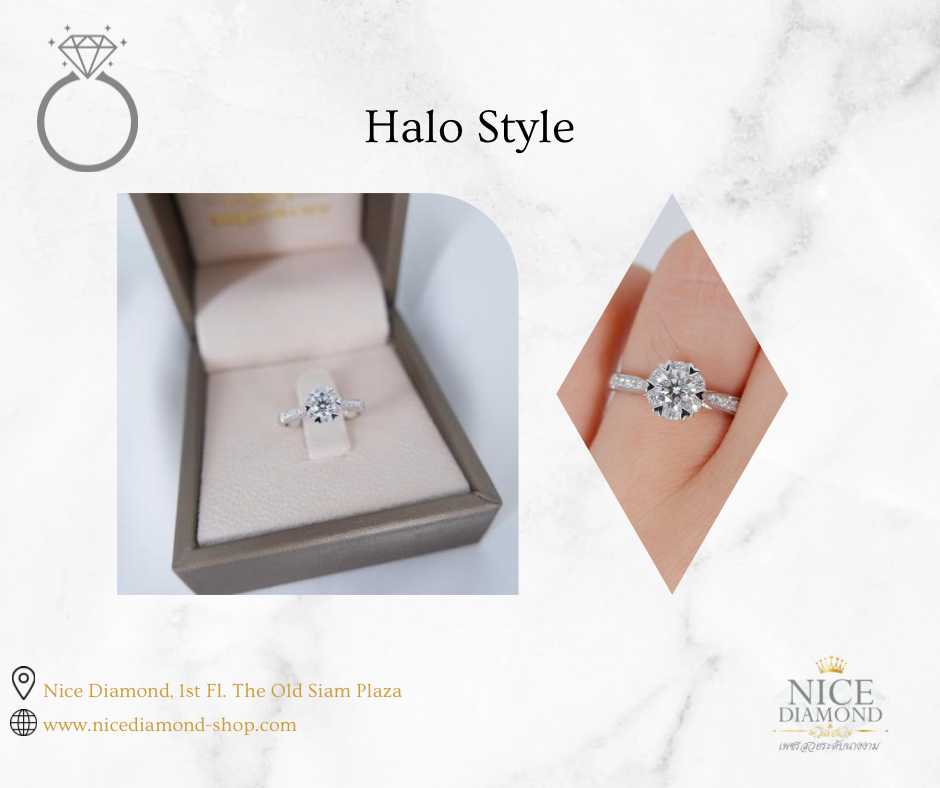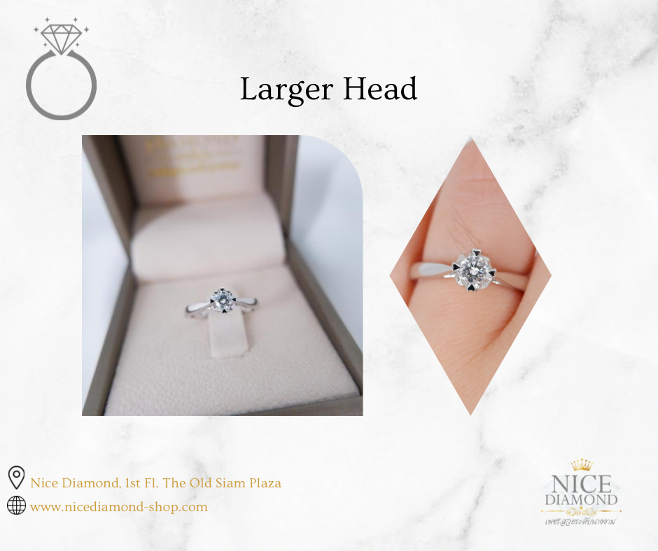 ดีไซน์นี้เหมาะสำหรับคนที่ชอบแบบเพชรชูเม็ดเดี่ยวเช่นกัน โดยการเลือกตัวเรือนที่มีส่วนของกระเปาะใหญ่กว่าเพชรจริง ซึ่งจะช่วยทำให้เพชรชูดูใหญ่กว่าเดิมได้เกือบ 2 เท่า เช่นแบบด้านล่างนี้ มีเพชรขนาด 0.19 กะรัต แต่หน้าเพชรดูใหญ่เทียบเท่าไซส์ 0.30 กะรัต ค่ะ