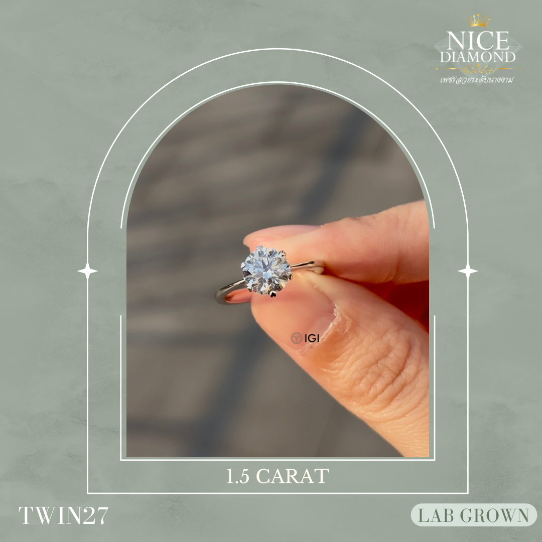 - เพชรชูเม็ดเดี่ยว 1.56ct ตัง. (Round Brilliant, น้ำ100 D color, VVS2, EX, EX, IDEAL CUT, ใบเซอร์ IGI)